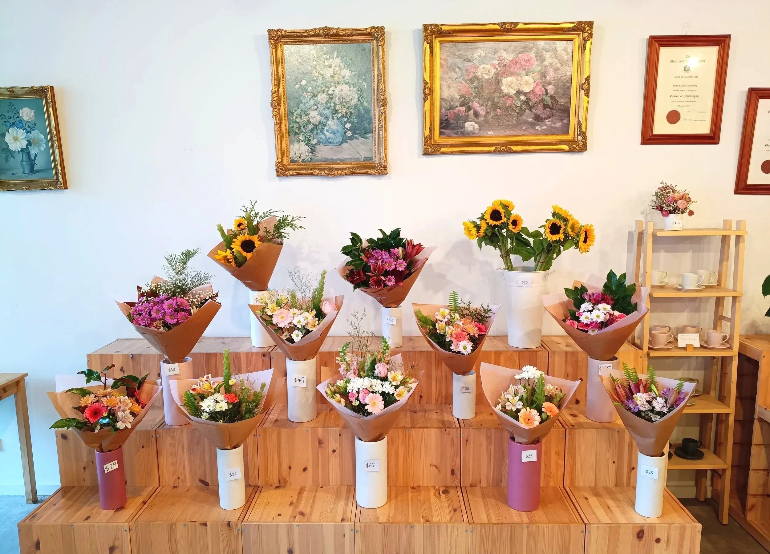 We source our flowers fresh each morning from a local supplier who drives around the flower farms in the Dandenong Ranges.
